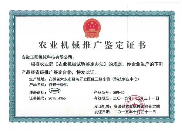 農(nóng)業(yè)機(jī)械推廣鑒定證書